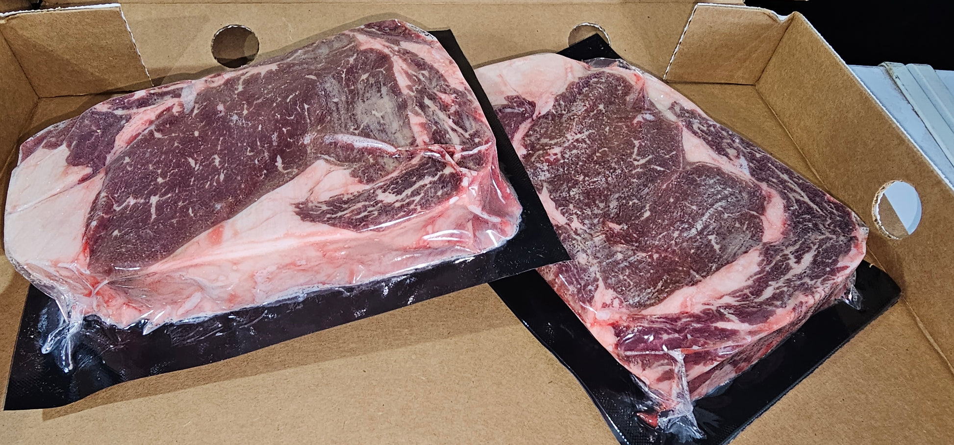 (2) Cowboy Cut Ribeyes: Marbled to perfection and bursting with flavor, these large ribeyes will satisfy the largest appetites.